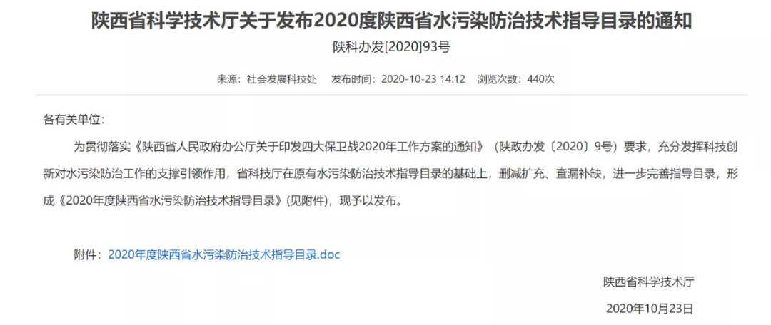 中科水治理技術(shù)入選2020年度陜西省水污染防治技術(shù)指導(dǎo)目錄