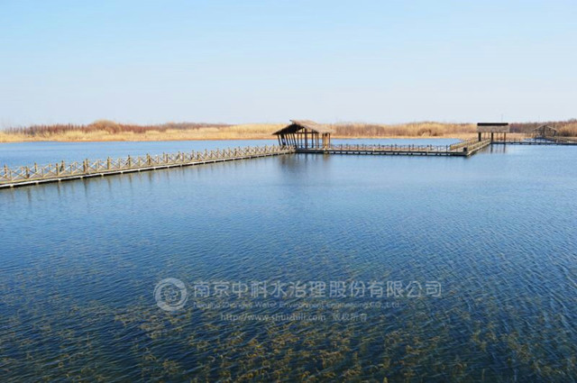 溱湖國家濕地公園內(nèi)的溱湖風景區(qū)是國家5A級旅游景區(qū)和經(jīng)江蘇省人民政府批準的省級風景名勝區(qū),是由國家林業(yè)局批準設(shè)立的全國第二家、江蘇省首家國家級濕地公園。溱湖生態(tài)構(gòu)建示范區(qū)水面面積約8萬㎡,平均水深1.5m,生態(tài)構(gòu)建之前水體透明度僅為25cm。我司通過人工干預(yù),打破水體濁水穩(wěn)定態(tài),水生植被覆蓋率70%左右,水體平均透明度達到1.5m,清澈見底,形成穩(wěn)定的良性生態(tài)系統(tǒng)??⒐ぶ两瘢鷳B(tài)系統(tǒng)一直保持穩(wěn)定,水質(zhì)指標達到《地表水環(huán)境質(zhì)量標準》(GB3838-2002)Ⅰ類水標準。